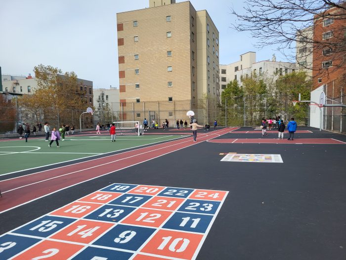 The new playground at C.S. 150 is just one of many improvements coming to the immediate area, Salamanca Jr. said. Pointing just beyond the play yard fence, he said the now-empty lot is slated to become a senior housing building with a ground-floor community center to replace the historic Fort Apache Youth Center that helped bring kids off the streets and into a boxing gym throughout the 1980s and 90s.