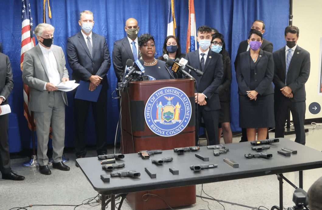 “My Violent Criminal Enterprise Bureau then conducted an investigation and tied the gang to the shootout in a car dealership where a father was wounded while protecting his kids, and to a shooting on the street targeting rival gang members that instead wounded a 52-year-old woman for life,” Clark said. “With our law enforcement partners, I will not let people destroy the Bronx bullet by bullet.”