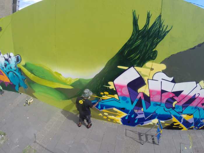 Saturday’s festivities also showcased a mural unveiling by renowned graphic designer, illustrator and founder of Super Fresh Design, Andrea von Bujdoss. Von Bujdoss is a native New Yorker with an eye for bold lines and vibrant colors. Her murals bring life to drab walls and imbue neighborhoods with oomph.