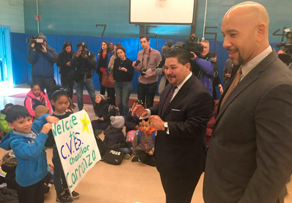 The College of New Rochelle’s Interim Dorothy Escribano and New York Yankees legend Mariano Rivera presented a full scholarship to Bronx high school student Camila Barrientos at a special ceremony on Monday, September 18 at Leland Castle. Barrientos, a Cristo Rey High School graduate, earned this year’s Mariano and Clara Rivera Scholarship for achieving academic excellence wile being actively involved in her community.