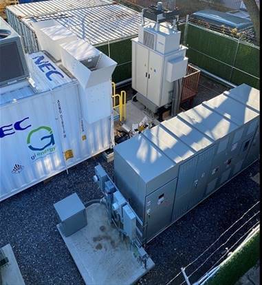 The battery system on a customer property at 220 City Island Avenue can provide 1 megawatt – or a million watts – to customers along the business strip. That will take stress off the Con Edison grid on hot summer days when electrical usage soars.