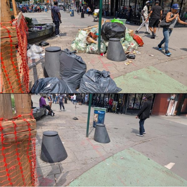 The Department of Sanitation and NYPD put up barriers around the seating area at Third and Willis Avenues, escorted people using drugs out of the public area, cleared out trash and drug paraphernalia and set up a mobile command center to address residents’ needs.