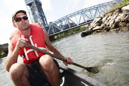But the rezone approval rankled Bubbins for a handful of reasons. On July 10, he pushed a canoe down E. 141st, past the Mott Haven Houses and the Major Deegan Expressway to the Harlem River and launched a watery Lower Concourse tour. First, Bubbins fears gentrification. Although the rezone incentivizes the construction of affordable housing, that housing may be built off-site and, according to Bubbins, its affordability is based on regional median income levels, not median income levels in the poor south Bronx.