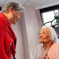 Josefina Medina Lugo, a 95-year-old, was sitting in her wheelchair in one of the communal rooms on the third floor of San Vincent de Paul nursing home in Woodstock on Friday, May 11, in her pink floral printed dress and pink sweater, waiting for her surprise guest.