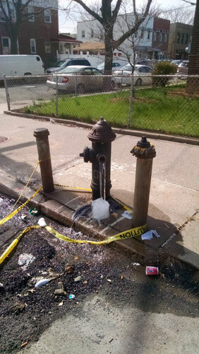 Finally, about two weeks after the fire hydrant problem began, the Department of Environmental Protection went to the location to attempt a repair, but to no avail after three trys.