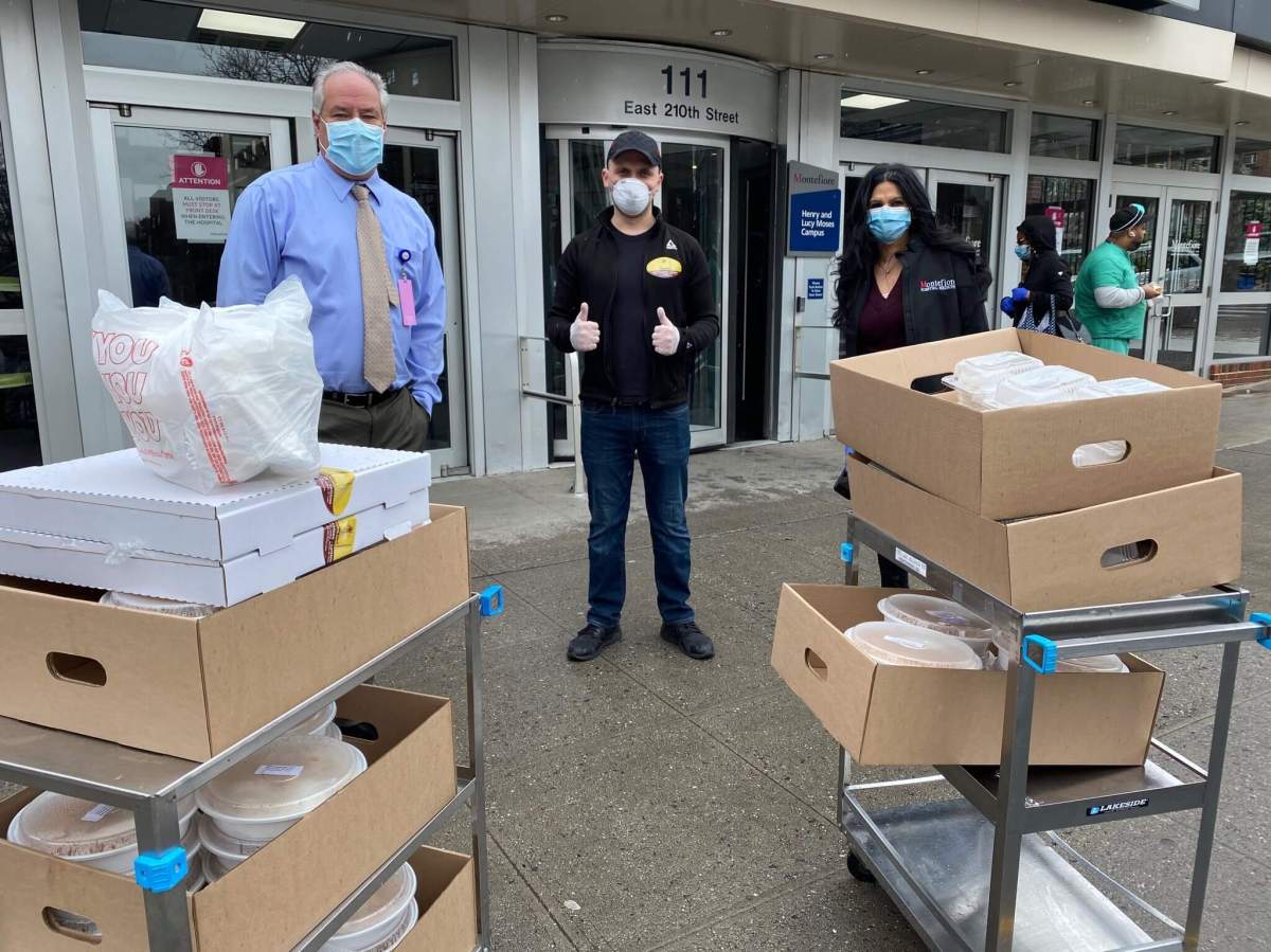 They are delivering food five days a week and have brought food to Montefiore Moses, the Jack D. Weiler Hospital, Wakefield and BronxCare. This past week alone they served 605 individually packaged meals to Bronx hospitals through Feed the Frontlines.