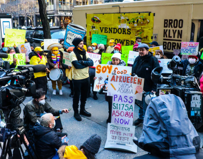 Monday’s 24-hour demonstration outside the governor’s office is another in a string of public protests — including a Feb. 16 protest outside the Sheraton Times Square Hotel where Hochul received the backing of state Democrats in an upcoming gubernatorial primary — by street vendors and advocates calling on the state to formalize and decriminalization the street vending industry.