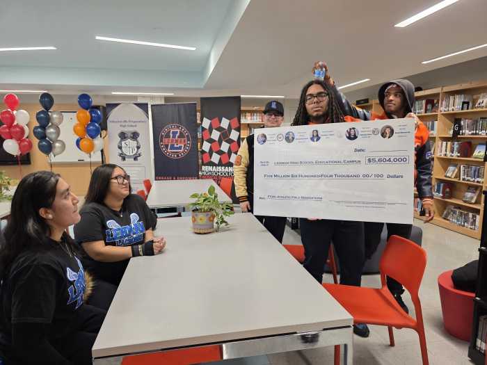 The celebratory announcement in the Lehman High School library included Borough President Vanessa Gibson, City Council Members Amanda Farías and Kristy Marmorato, Schools Deputy Chancellor Kevin Moran and Bronx High School Superintendent Marcell Deans.
