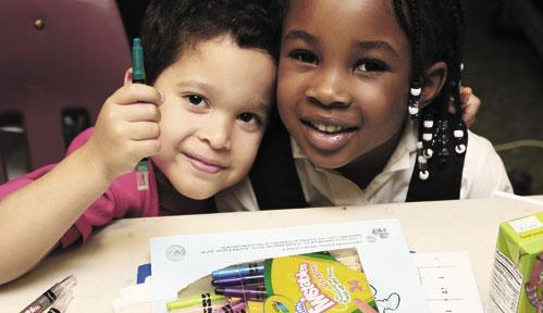 Mathew Elias-Aponte, 4, and Mykalah Channer, 4, passed the time by working on their activity books during the Mosholu Montefiore Community Center’s annual small high school fair held on Wednesday, October 15 at Gun Hill Road and Dekalb Avenue. Parents found out more information about their children applying to high schools.