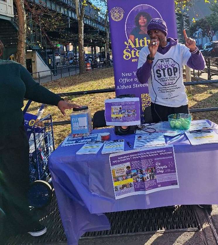 The Multicultural Advisory Board of New York City Council District 16 held a domestic violence awareness day of action, known as “NYC Go Purple Day,” on Thursday, Oct. 16.