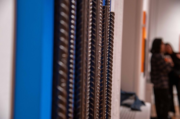 Andrew Freedman House’s other fellow, Quezada, presented bright, geometric works with diverging color palettes and textural elements reminiscent of rural towns in the Dominican Republic, where he researched construction methods and materials for inspiration.