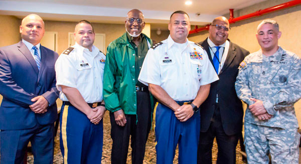 (l-r) NYC Grey Cadet’s lieutenant Manuella Disla, sergeant first class Franhelis Garcia with the day’s honorees lieutenant colonel Maria Soto, colonel Dave Laguer and lieutenant colonel Brendaly Figueroa.
