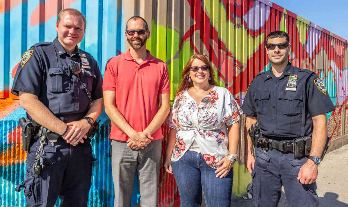 Pignata added that the 49th Precinct’s Neighborhood Coordination police officers assisted in painting eyeballs on two of the fish depicted in the Alewifes & Eels mural.