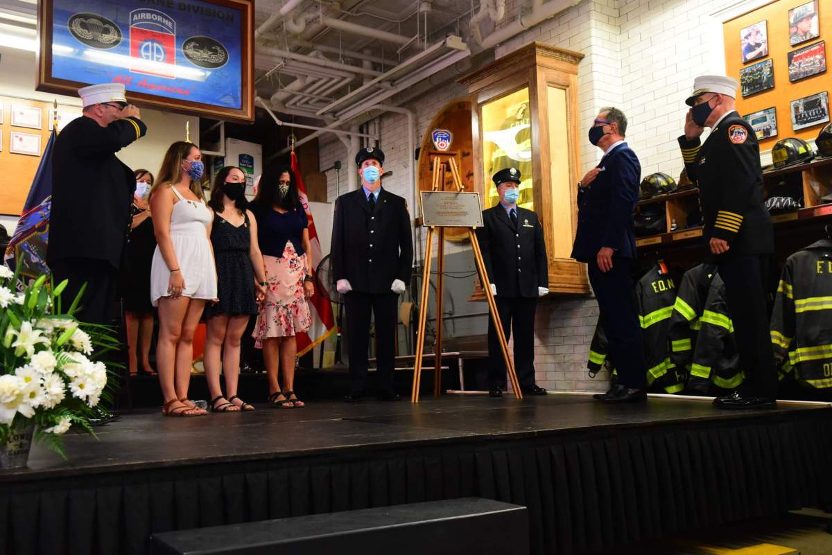Speakers at the ceremony in Sullivan’s former station house included Fire Commissioner Daniel A. Nigro, Uniformed Fire Officers Association President Jake LeMonda, Sullivan’s friend and colleague firefighter Jim Smith along with the Commanding Officer of Squad Company 41, Captain Thomas McHugh.