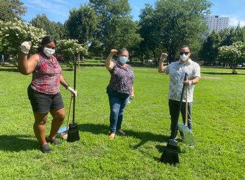 Councilwoman Gibson cleans trash at Joyce Kilmer Park.Courtesy of Office of CM Gibson -