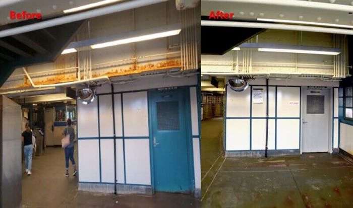 New LED lights were added to brighten up dark areas and other lights were deep cleaned. Platform benches were refinished and safety lines were repainted along platforms and stairways.