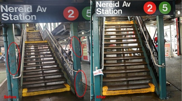 The Nereid Avenue train station is the northernmost stop on the 5 train and the second to last stop on the 2, a stone’s throw from Mount Vernon in Westchester County. It is the 47th station to be touched up through this program since its start last fall. Fifteen of these stations were in the Bronx, according to MTA spokesperson Meghan Keegan.