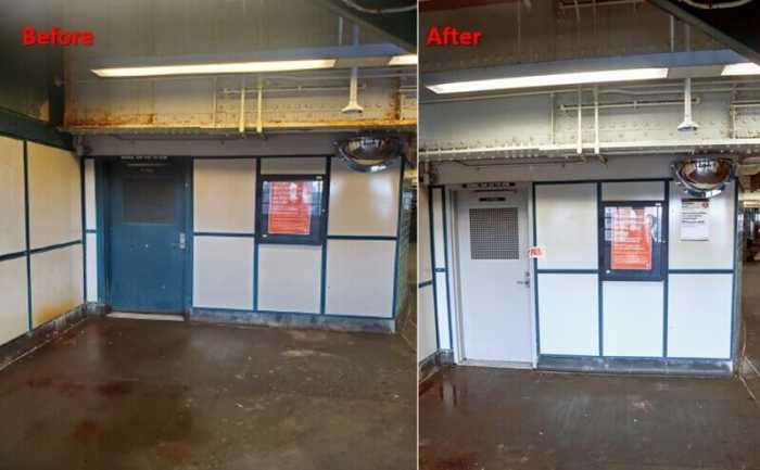 Workers also scraped off peeling paint and primed surfaces before repainting the station. Along with repainting the stairways, they added new safety treads to prevent people from slipping and tripping.
