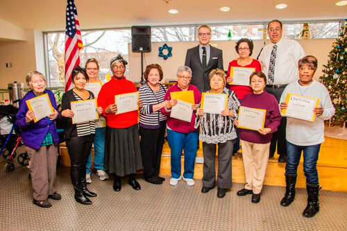 On Thursday, December 11, Councilman James Vacca visited Regional Aid for Interim Needs, Inc. Senior Center located at 3377 White Plains Road in Gun Hill. The councilman presented the graduating computer class their diplomas.