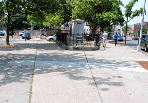 There was originally a flagpole inside the gated memorial, but there hasn’t been one at the site for at least 35 years, said Vitacco who also wants a greenstreet, an enclosed section of grasses and plants, in the cement triangle facing the memorial.