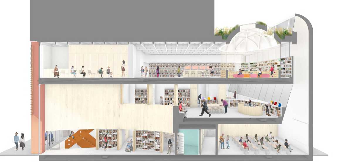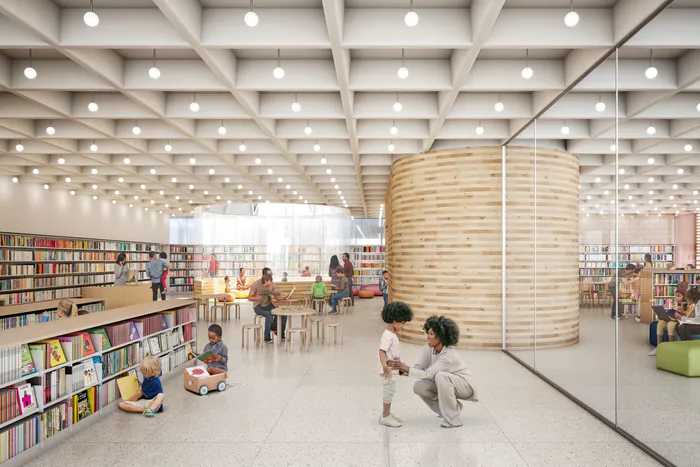 The library will have a variety of dedicated spaces, including those for children, teens and families. There will also be a double-height adult reading room and multiple study areas. The building will also have an emergency generator to provide backup power and cooling to many of the library’s amenity spaces, as well as the community room.