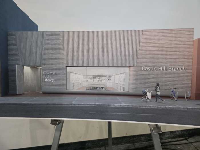 The existing branch at 947 Castle Hill Ave. opened in 1981. The revamped location will have a more open feel with skylights and a large front window at sidewalk level; dedicated spaces for kids, teens and adult learners; new furnishings and technology; upgraded electrical and fire safety systems, and a green roof.