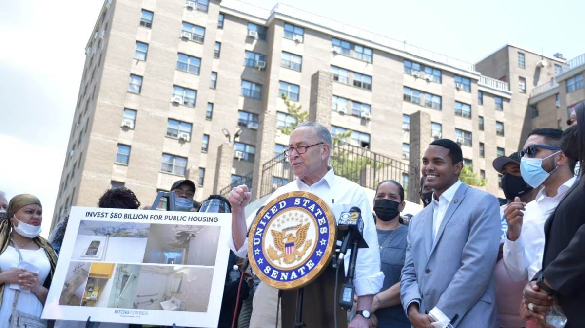 Senator Charles Schumer and Congressman Ritchie Torres unveiled a push over the weekend for an $80-plus billion dollar investment in federal public housing funds via the just-proposed American Jobs Plan.