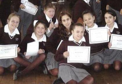 Teachers and parents shared in the ceremony held in St. Theresa’s gymnasium. Sr. Martha Otterstadt, St. Theresa’s Director of Religious Education, joined in congratulating the students on their achievement.