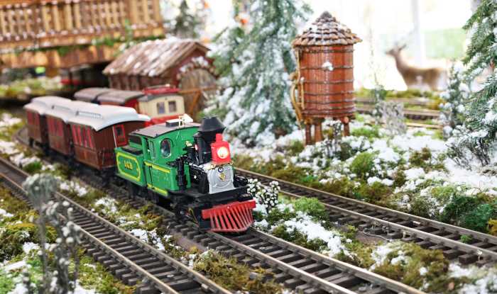 As visitors enter, they are greeted with a loud “all aboard” by train conductors holding lanterns and wearing all blue uniforms. Familiar buildings make a cameo: the Metropolitan Museum of Art, the Bethesda Fountain in Central Park, the Stephen A. Schwartzman Library on Fifth Avenue with two new structures unveiled this year —the Delacorte Theater in Central Park and the Whitney Museum of American Art in the Meatpacking District.