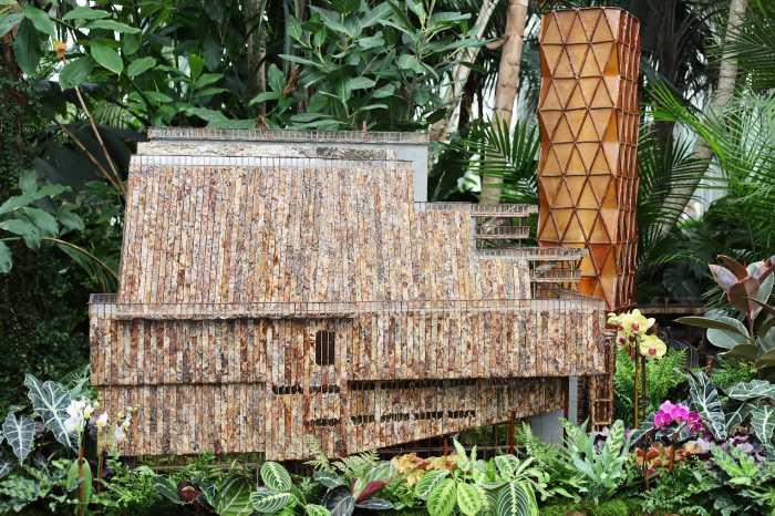 “A lot of times we’re doing historic buildings, which I love just as much, but it’s a really different challenge to celebrate a modern building,” Laura Busse, CEO and president of Applied Imagination said of the Whitney model. “It’s such a complicated shape. Every piece of bark has to be cut at a slight and different angle to achieve the look of that façade and the same with the leaves that we used on the roof. The challenge really is making sure that we’re doing right to the architectural form.”