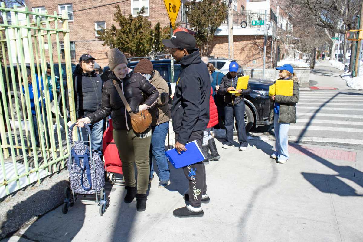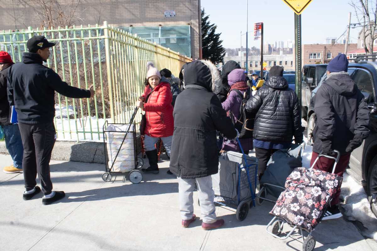 Theory 9 held its monthly food distribution for Bronx residents on Friday, Feb. 27, outside the Marie Curie High School for Medicine, Nursing and Health Professions, located at 120 W. 231st St.