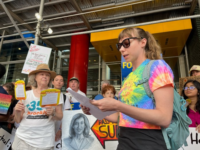 Advocates for climate change laws — including Bronx residents — gathered outside Gov. Hochul’s Manhattan office on Aug. 2, urging her to sign the Climate Change Superfund Act, which would require fossil fuel companies to share the cost of climate change mitigation.