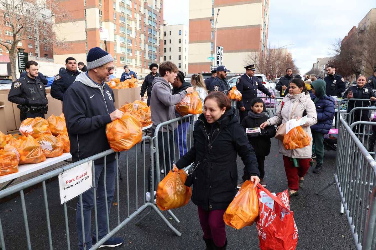 “It’s the holiday season. Everybody deserves to enjoy the holiday season. We are so pleased with the 44th Precinct, that they invited us to come and participate,” Robinson said. “They’re giving out the toys and we’re giving out the food. It’s a beautiful partnership between the 44th Precinct, the New York Yankees and Food Bank for New York City.”